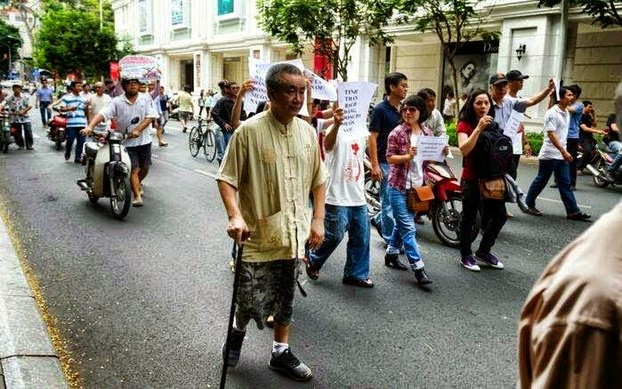 nhà văn Nguyễn quang Lập trong một lần biểu tình chống Tàu cộng gần đây |