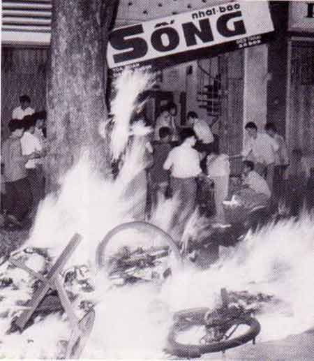 Ra đại lộ Lê Lợi như dòng sông đổ ra biển. Người dân hai bên đường hoan hô người biểu tình, nhiều người hào hứng nhập vào đoàn, nhất là thanh niên học sinh. Đến chợ Bến Thành, những người buôn bán trong chợ ào ra “bố thí”. Các ký giả ăn mày, nhét vào bị của chúng tôi đủ thứ bánh trái và quà tặng khiến cho hình ảnh ký giả đi ăn mày càng đậm nét…”