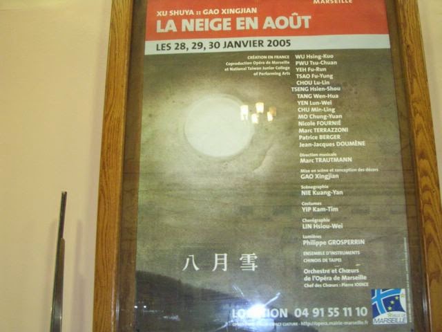 Một vở diễn độc đáo do sự phối hợp của Nhà hát Opera Marseille và Trường cao đẳng nghệ thuật biểu diễn quốc gia Đài Loan, với gần hai trăm diễn viên hát tiếng Trung và tiếng Pháp, dàn nhạc Marseille và dàn nhạc Đài Loan. Kịch bản âm nhạc (livret) được phóng chiếu lên cho người xem theo dõi nội dung. Dựng cảnh và trang trí là do tự tay Cao, những bức phông lớn ông vẽ bằng mực tàu. Cả phòng xem rộng lớn chật kín người im phắc, nghe và xem. Kết thúc, từng nhóm diễn viên lần lượt ra chào. Tiếng vỗ tay kéo dài. Và khi cuối cùng Cao xuất hiện cùng với nhạc sĩ và diễn viên chính thì mọi người vỗ tay dồn dập, hồi lâu. Mãi khi khán giả đã về hết, nhân viên nhà hát đã ra hiệu đóng cửa, ông vẫn còn bị vây bọc giữa các đại biểu hỏi han trò chuyện. Bên ông là Goran Malmqvist thành viên Hàn lâm viện Thụy Điển, Tchen Yu-Chiou bộ trưởng cố vấn cho tổng thống Đài Loan, Mabel Lee giáo sư Đại học Sydney, Noel Dutrait giáo sư Đại học Provence, những người thân quen cũ. Tiếng Trung tiếng Pháp đan nhau trong cuộc chuyện trò. Tôi bực mình tiếng Pháp nói ú ớ, tiếng Trung không biết, để bắt chuyện cùng ông. Đành là lặng lẽ đứng ngắm ông, chụp ảnh ông, và thầm vui lần đầu tiên trong đời được gặp mặt một nhà văn giải thưởng Nobel. Ấn tượng ban đầu của tôi về ông là thấy ông hiền lành, dễ gần.