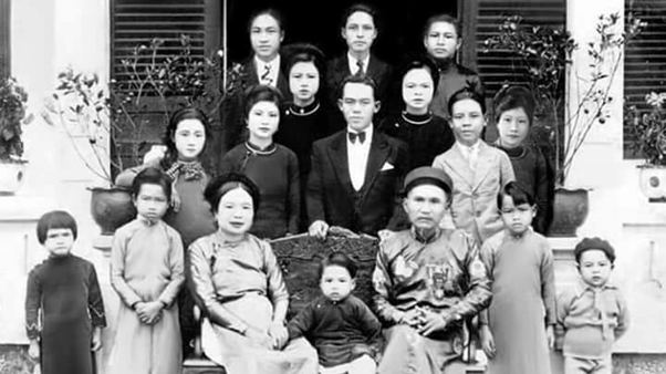 Gia đình bên ngoại nhà tôi (DT): Cụ ông và cụ bà Đốc Tờ Dỵ và các con (mẹ tôi – bà Nguyễn Thị Ngọc Quyên, hàng thứ hai ngoài cùng bên trái). Bác Nguyễn Lương Ngọc đứng giữa ở hàng trên cùng