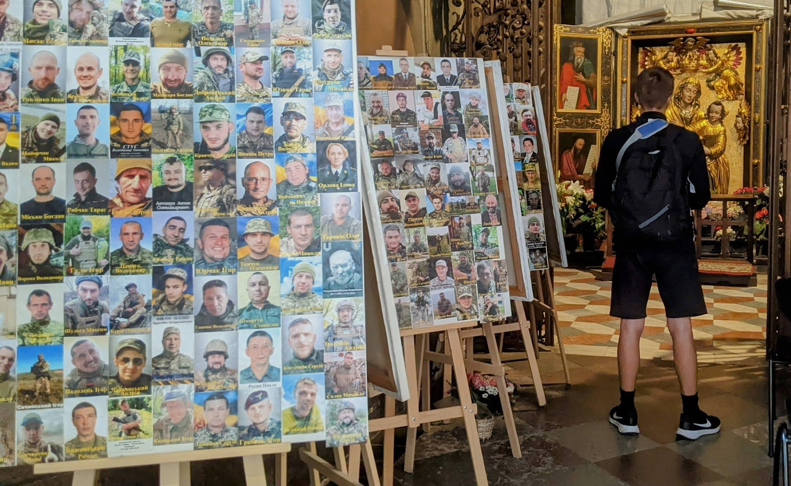 Địa điểm đầu tiên tôi đến thăm ở Ukraine là nghĩa trang liệt sĩ Lviv. Từ xa nhìn xuống, hàng nghìn lá cờ nhấp nhô như một rừng gươm nhiều màu sắc. Lúc tôi đến, quân nhạc và các tu sĩ nhà thờ đang cử hành tang lễ cho một liệt sĩ. Chiếc thập giá khổng lồ dẫn đầu đoàn người chậm chạp tiến vào giữa rừng cờ. Người mẹ của liệt sĩ cúi đầu, lặng lẽ đi sau quan tài.