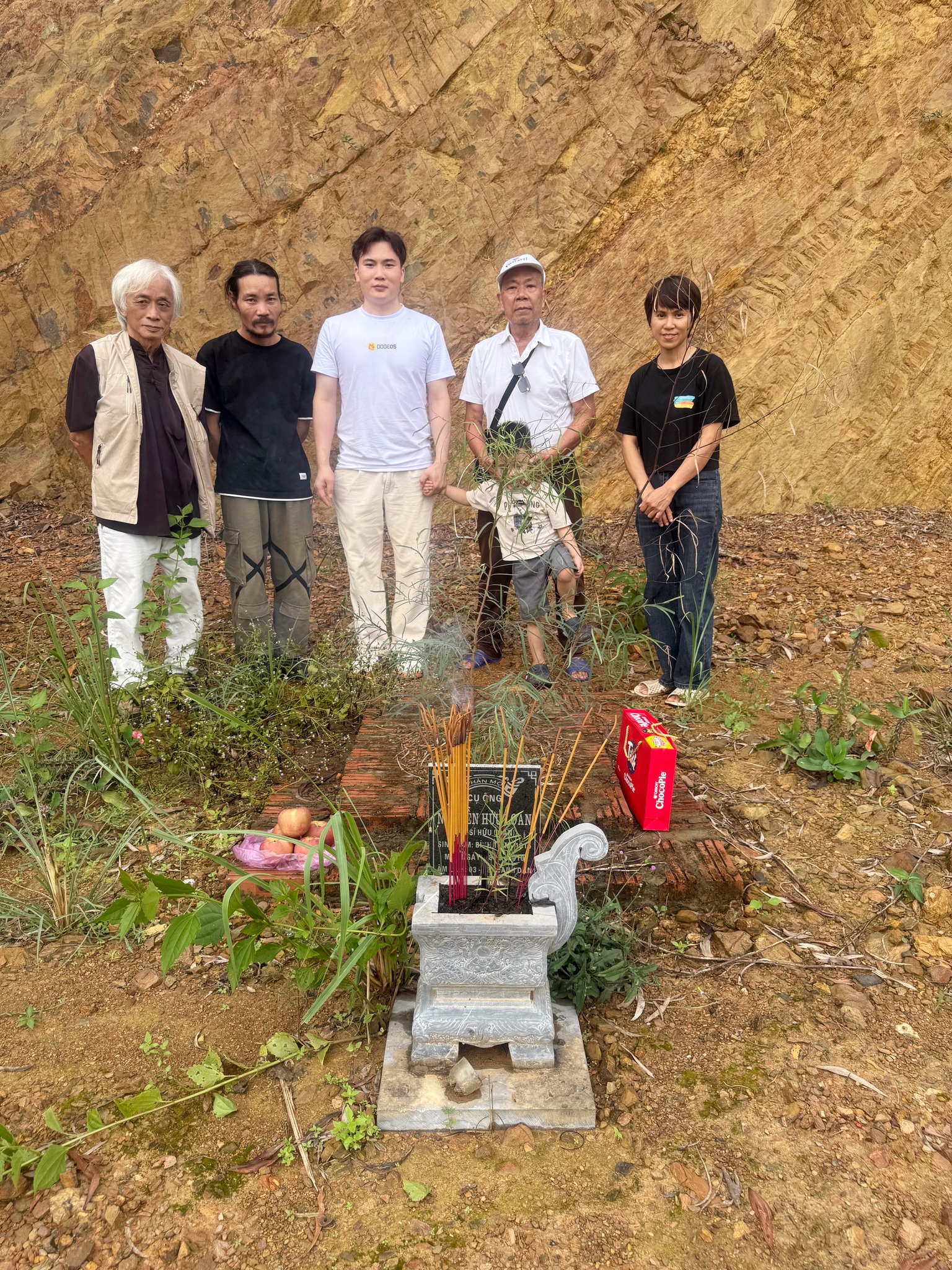Tháng 10.2025. Niệm hương trước ngôi mộ (chưa xong) của nhà thơ Hữu Loan trên phần đồi sẽ là nghĩa trang gia tộc.
