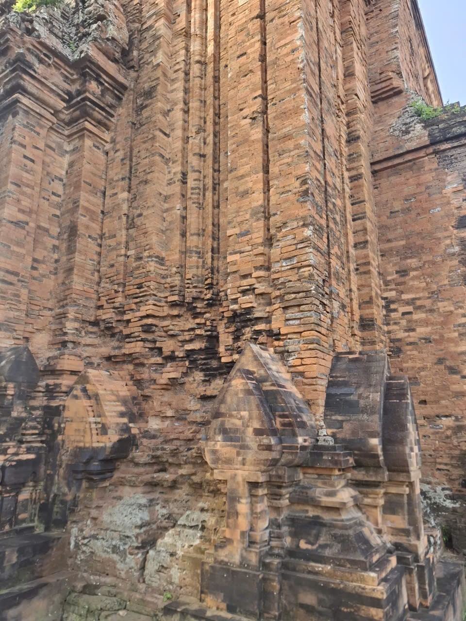 Khi đặt tay lên gạch tháp Bình Lâm, sự khác biệt giữa cũ và mới hiện ra rất rõ. Những viên gạch cổ đã nằm ở đó hàng thế kỷ đứng cạnh những viên gạch mới được bổ sung trong các đợt trùng tu. Chúng không hòa lẫn, không che khuất nhau, mà cùng tồn tại trong một cấu trúc.
