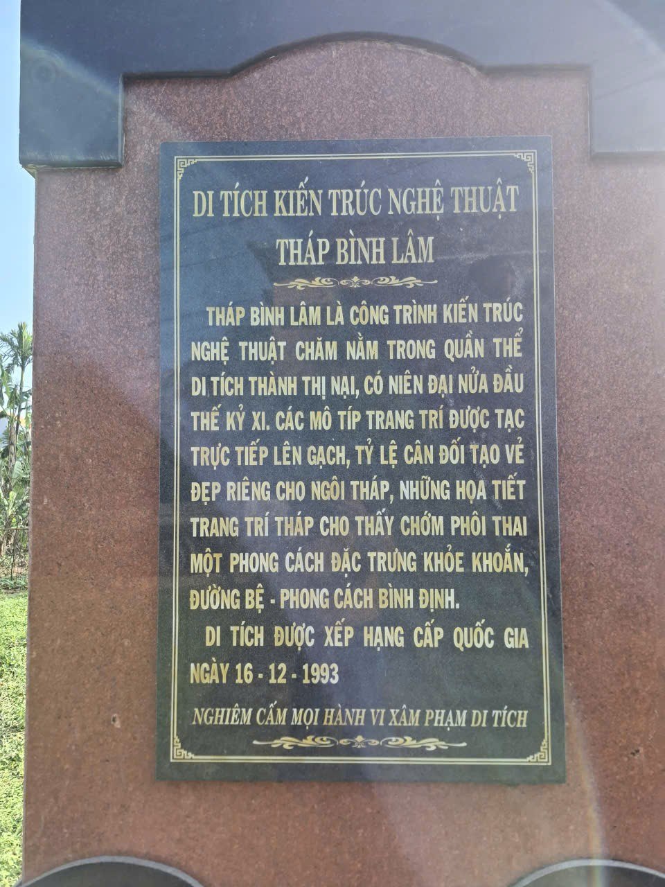 Tháp Bình Lâm được xây dựng vào khoảng thế kỷ XI, thuộc xã Phước Hòa, gần khu vực cảng thị Nước Mặn – nơi người Chăm đi vào Bình Định từ biển. Nghĩ đến điều ấy, tôi luôn có cảm giác tháp này giống một điểm dừng hơn là một sự vươn lên. Sau những hành trình dài, sau nhiều chuyển động và bất ổn, có lẽ điều cần thiết nhất không phải là mở rộng, mà là ở lại.