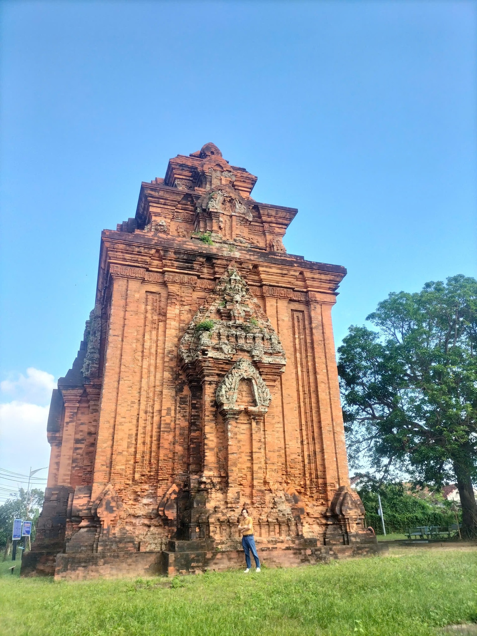 So với những tháp khác ở Bình Định – cao hơn, mở hơn, nhiều ánh sáng hơn – Bình Lâm giống như một cột mốc ban đầu. Một khối thô, nặng và im lặng của một vương triều.