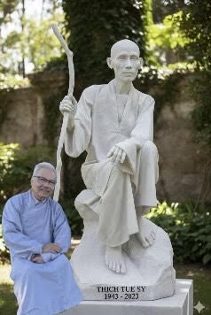 Tác giả bên tượng Thầy Tuệ Sỹ