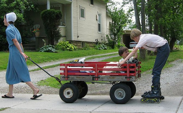Một bà mẹ Amish dẫn con đi dạo chơi