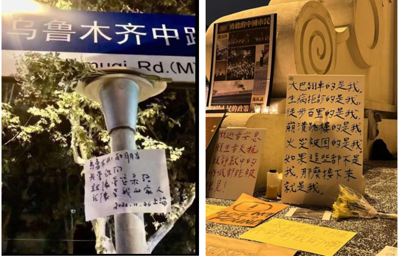 Nhiều bản tin và bài viết bằng tiếng Anh đã ghi nhận về các nhà thơ tham dự phản kháng. Lúc đó, đột ngột gia tăng nhanh chóng của các khẩu hiệu, bài thơ, bài luận, bài hát và tác phẩm nghệ thuật phản đối, hầu hết được sáng tác bởi người dân thường và sinh viên đại học từ Trung Quốc và trên toàn thế giới. Hầu hết các bài thơ đều không ghi tên tác giả. Thơ viết lên giấy rồi treo nơi cột đèn ngoài phố, tượng đá sân chùa. Lúc đó, cuộc biểu tình trên đường Urumchi ở Thượng Hải có lẽ là nổi bật nhất. Điều này có lẽ phản ánh tầm quan trọng mang tính biểu tượng của Thượng Hải trong địa chính trị của đất nước Trung Quốc. Có thể nói, cuộc biểu tình ở Thượng Hải là một trong những cuộc biểu tình nhạy cảm nhất về mặt chính trị, khi một số người biểu tình yêu cầu Tập Cận Bình từ chức và chấm dứt chế độ độc đảng ở Trung Quốc. Những người biểu tình ở Thượng Hải đã tạo nên mối liên hệ giữa những đau khổ của người dân ở hai thành phố: Thượng Hải và Urumchi. Đêm ngày 26 tháng 11/2022, một tờ giấy khổ A4 được dán trên biển báo đường Urumchi, trên đó có một bài thơ viết tay bốn dòng, không có tựa đề: