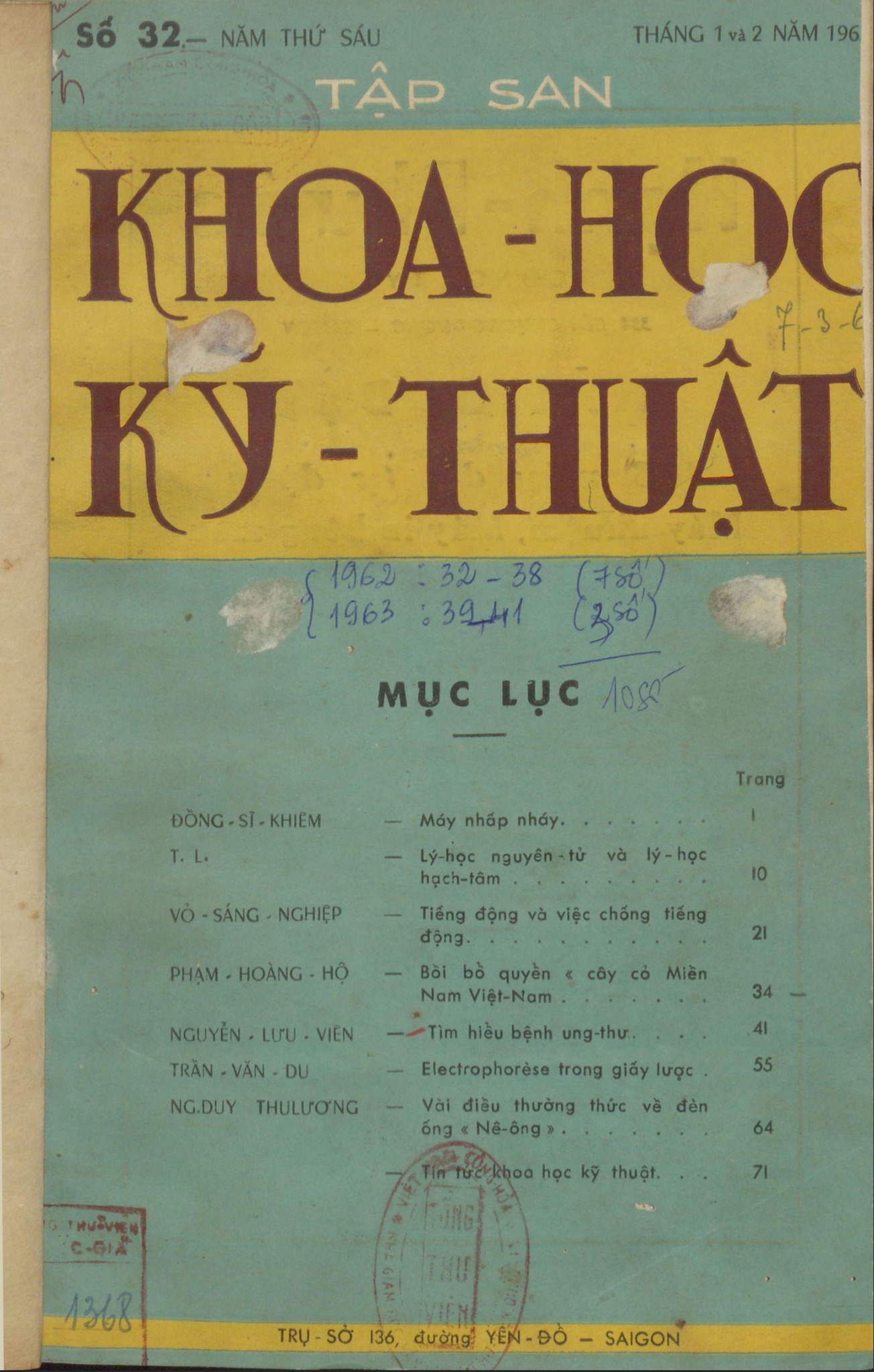 Tập san Khoa học Kỹ thuật số 32 (1962), có sự đóng góp của các trí thức thời đó như Phạm Hoàng Hộ, Nguyễn Lưu Viên, Đồng Sĩ Khiêm, v.v.